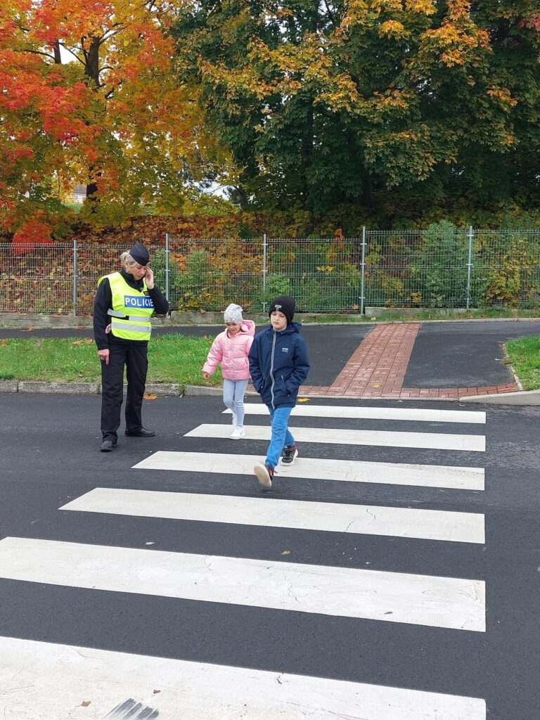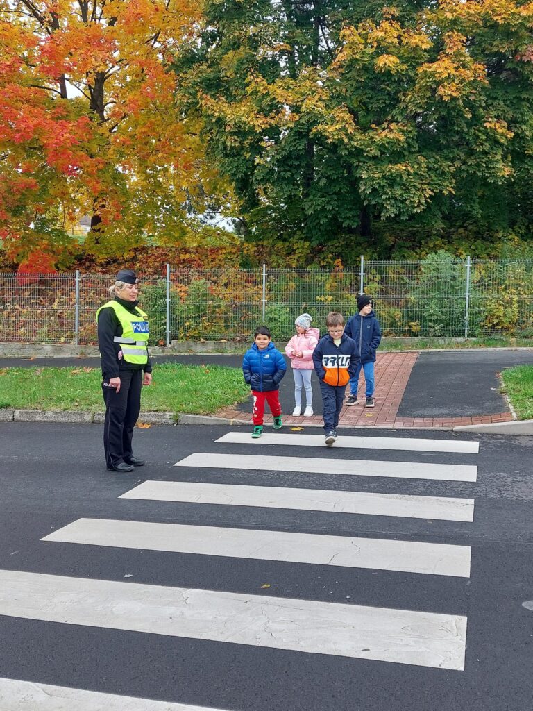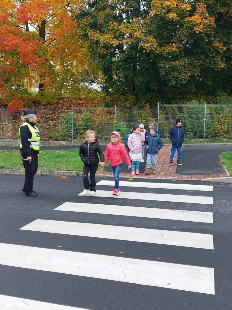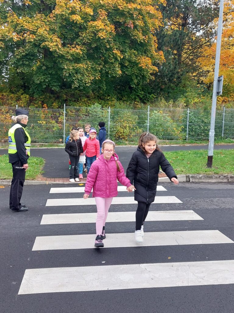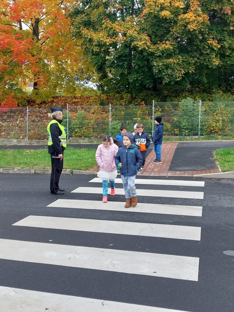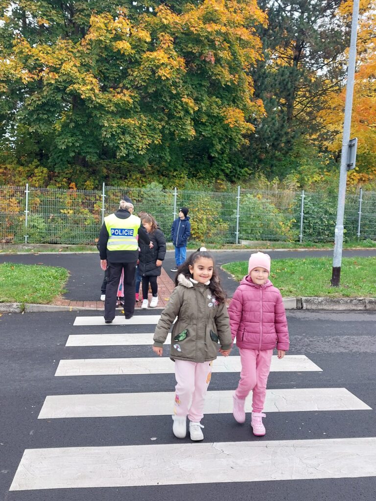 V minulém týdnu nás ve škole navštívila paní policistka Mertlová, která si s námi povídala o bezpečné cestě do školy. Společně jsme si připomněli, jak správně přecházet silnici na přechodu pro chodce, zopakovali jsme si význam některých dopravních značek a povídali si o tom, kde může být cesta nebezpečná. Po teoretické části jsme se vydali ven, kde jsme si vše vyzkoušeli v praxi. Ukázali jsme si, jak se správně rozhlédnout, kde být obezřetní a jak se chovat v blízkosti silnice. Paní policistka nás pochválila za naši pozornost a šikovnost a jako odměnu jsme dostali malý dárek.