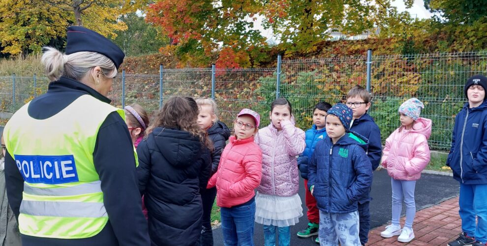 V minulém týdnu nás ve škole navštívila paní policistka Mertlová, která si s námi povídala o bezpečné cestě do školy. Společně jsme si připomněli, jak správně přecházet silnici na přechodu pro chodce, zopakovali jsme si význam některých dopravních značek a povídali si o tom, kde může být cesta nebezpečná. Po teoretické části jsme se vydali ven, kde jsme si vše vyzkoušeli v praxi. Ukázali jsme si, jak se správně rozhlédnout, kde být obezřetní a jak se chovat v blízkosti silnice. Paní policistka nás pochválila za naši pozornost a šikovnost a jako odměnu jsme dostali malý dárek.