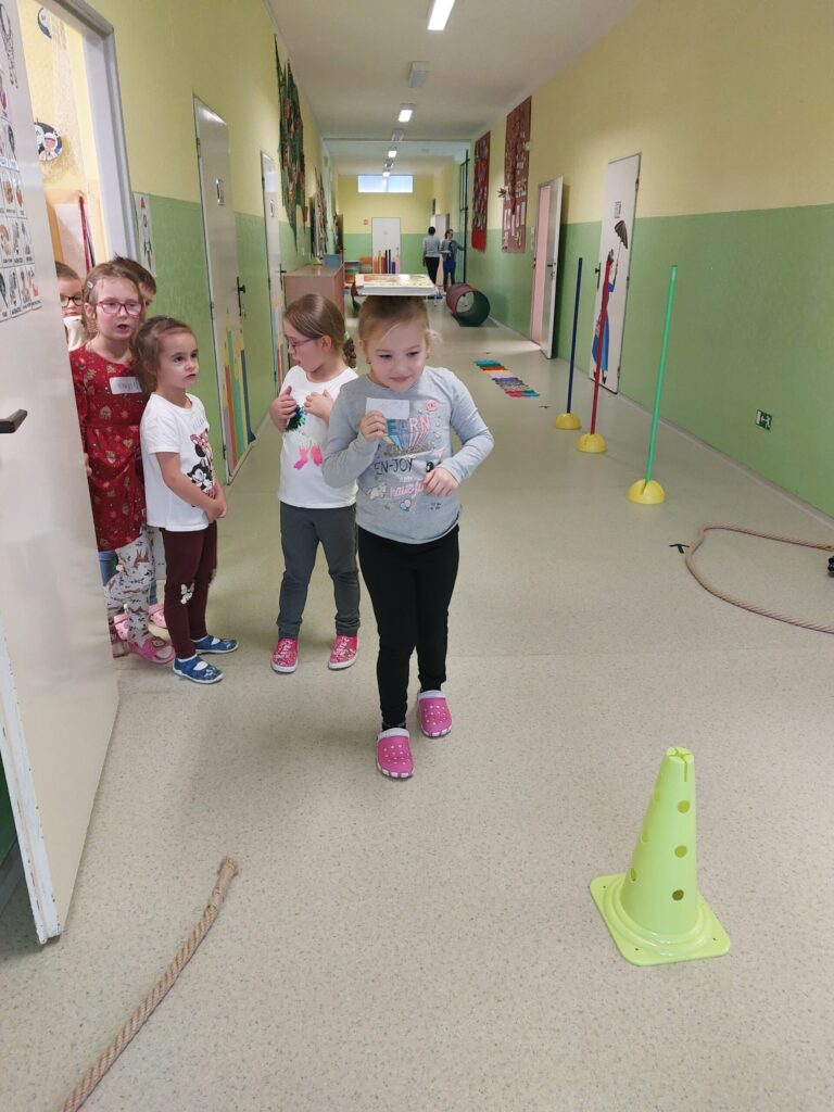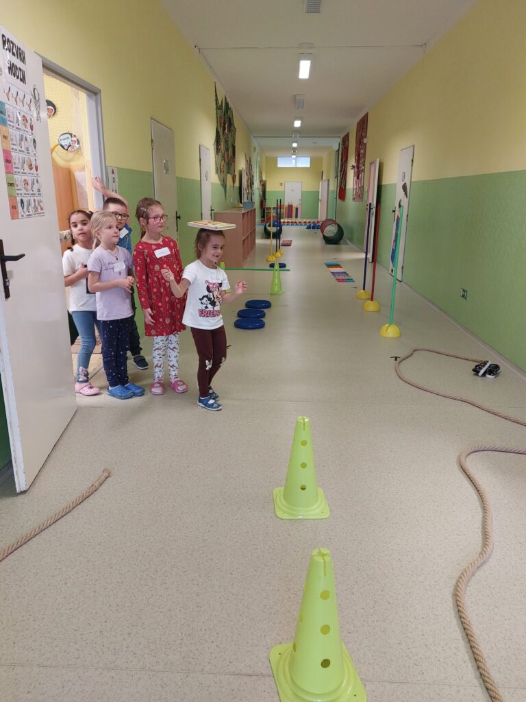 Dnes jsme měli ve škole další kolo školní ligy, které bylo zaměřeno na správné držení těla, rovnováhy a koordinace pohybů. Nejprve jsme se každou přestávku pořádně rozcvičili na chodbě, kde pro nás byla připravena zábavná překážková dráha. Na závěr nás čekala soutěž, kdo donese nejdál knihu na hlavě. Byla to skvělá zábava, hodně jsme se nasmáli a vydováděli.