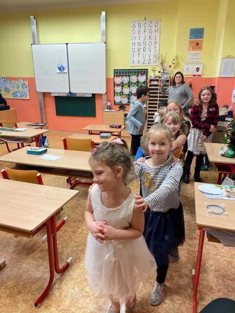 Naši prvňáčci přejí všem spolužákům a jejich rodičům hezké Vánoce.