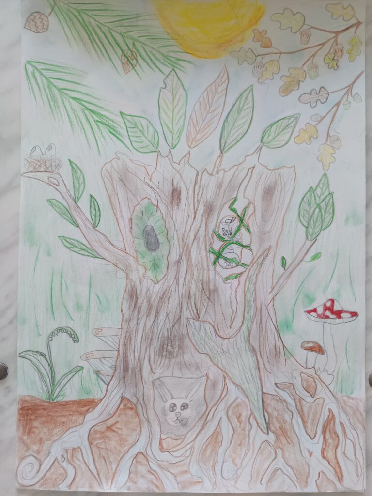 Veličenstvo les, tak se jmenuje soutěž galerie GAVU Cheb, do níž jsme poslali tyto krásné obrázky žáků 6. – 9. třídy. Les jako tajemné místo vůní, zvuků, chutí, tvarů, barev a hlavně jako jeden živý organismus, který musíme chránit a ctít.