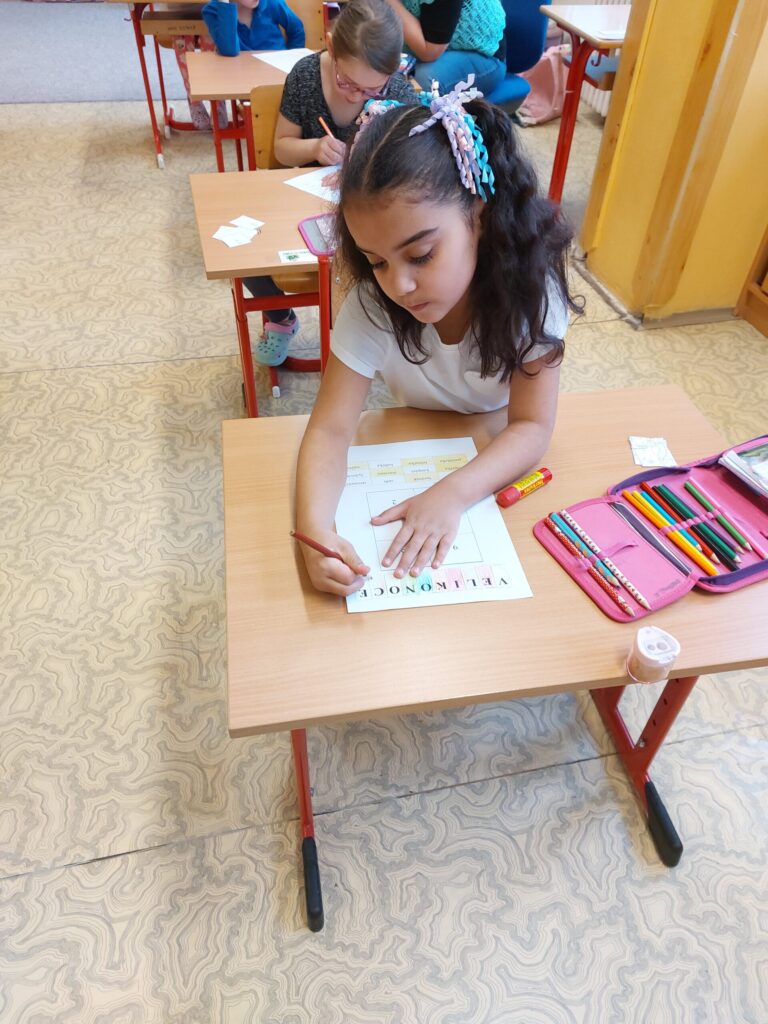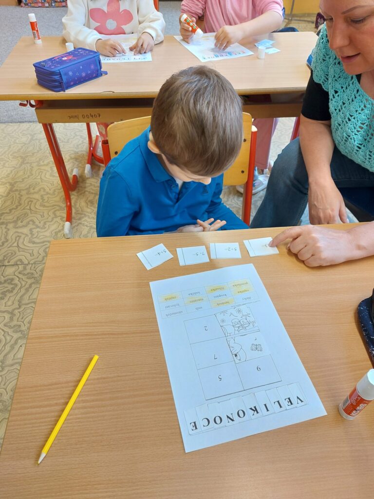 Na Velikonoce jsme se ve škole připravovali už s předstihem. Společně jsme si povídali o velikonočních zvycích a tradicích, které k tomuto svátku patří. S velikonoční tématikou jsme se setkávali i v matematice a v českém jazyce. Při tvořivých činnostech jsme vyráběli velikonoční dekorace. Sladkou tečkou za celým velikonočním obdobím bylo pečení mazanců. Vůně se linula celou školou a bylo opravdu těžké čekat, až vychladnou. Někteří to nevydrželi a ještě teplé mazance uždibovali. Velikonoční období jsme si všichni užili.