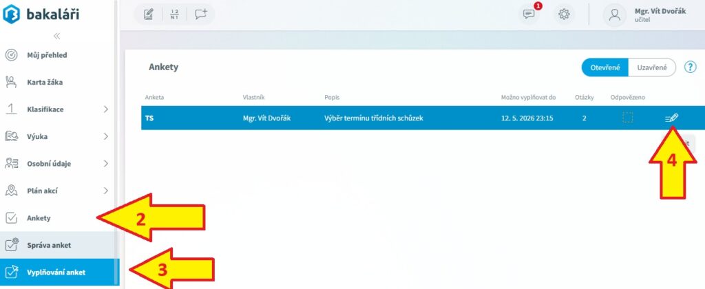 - Zvolte modul ANKETY – VYPLŇOVÁNÍ ANKET a vyberte UPRAVIT.
