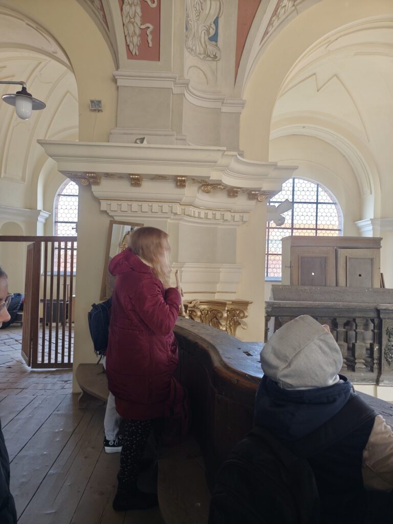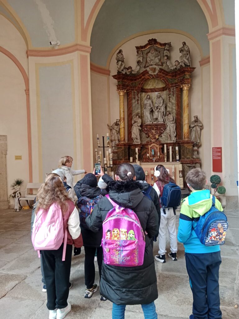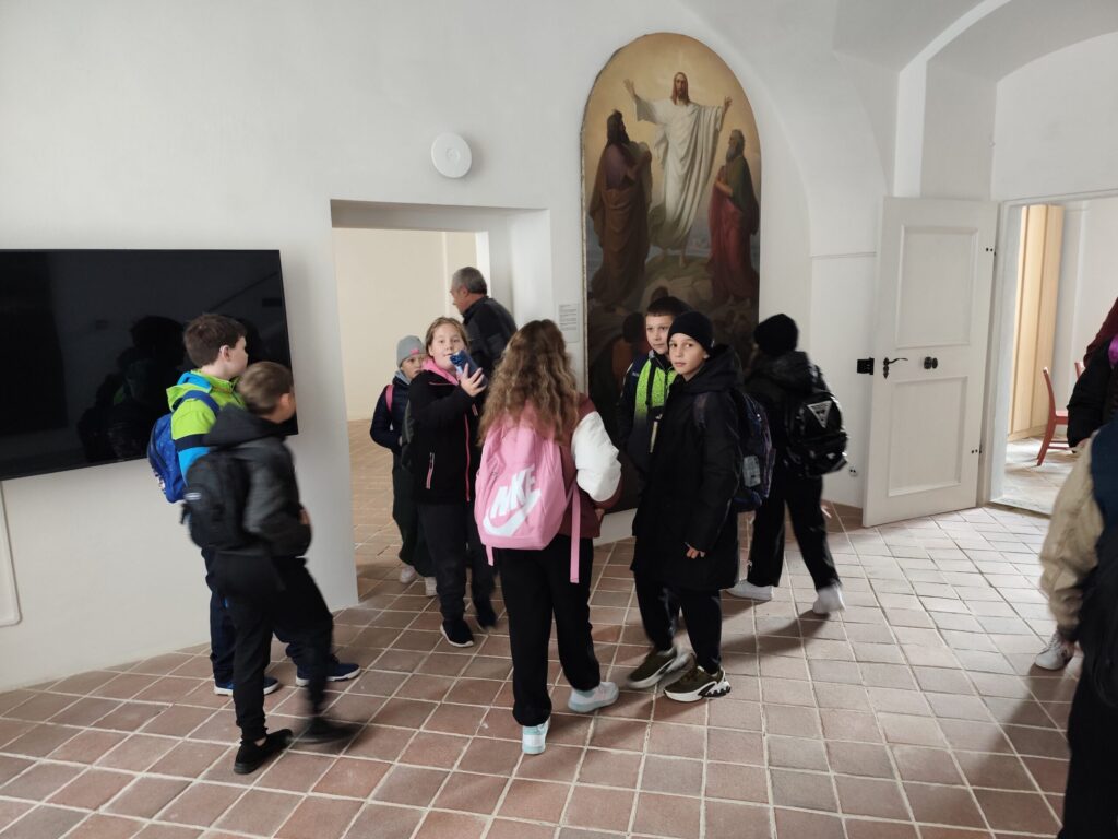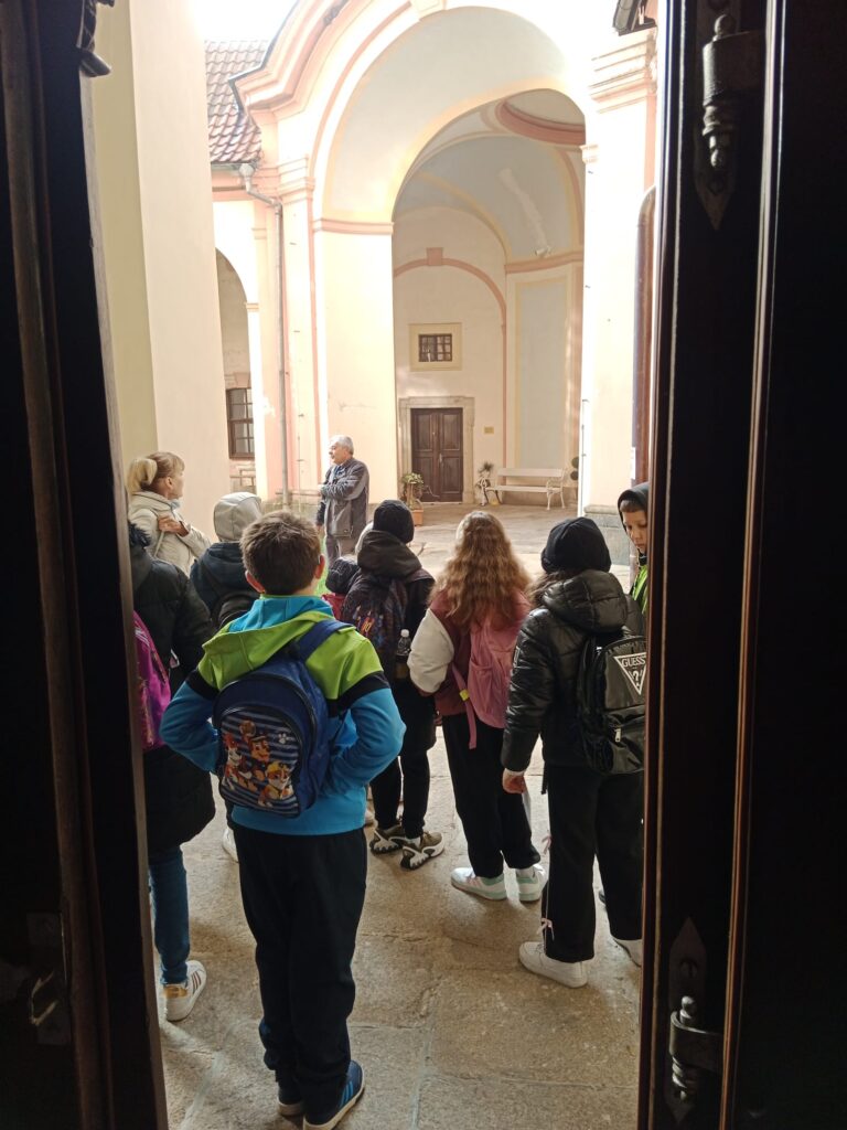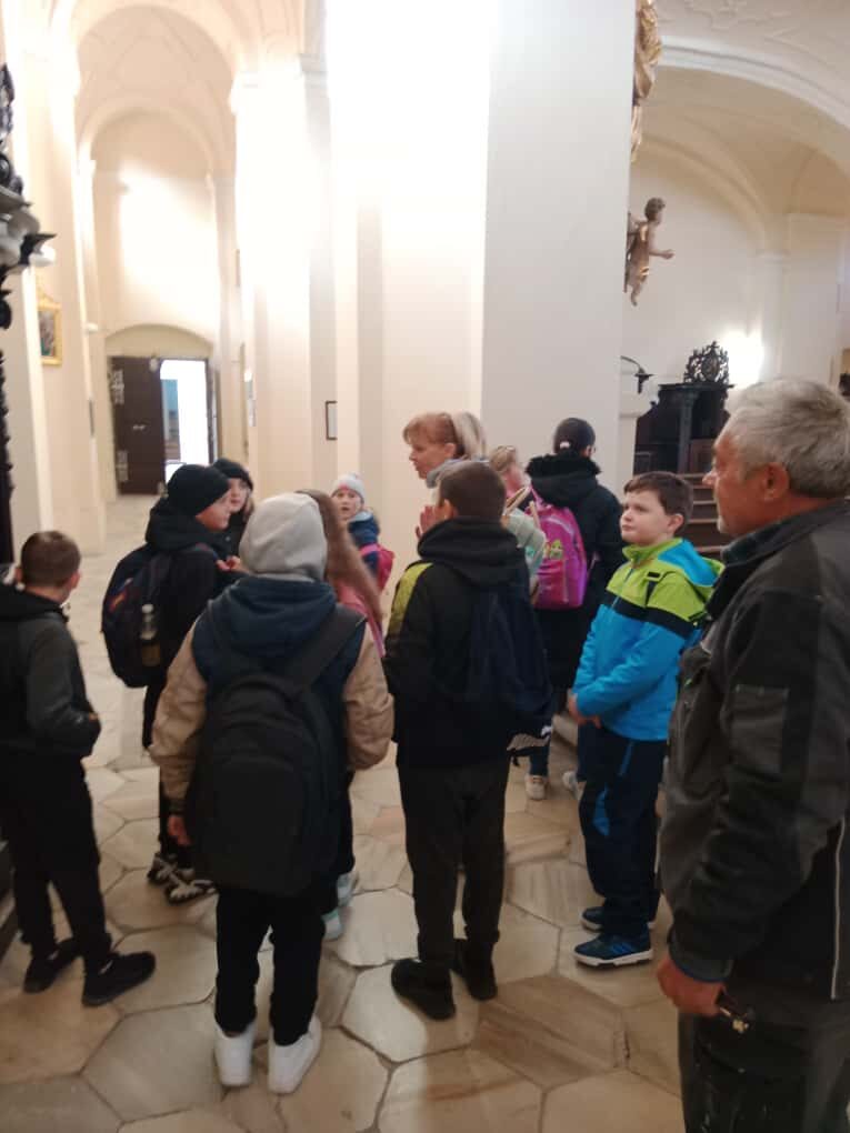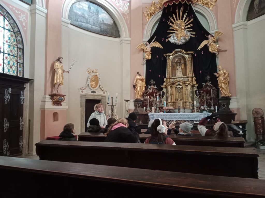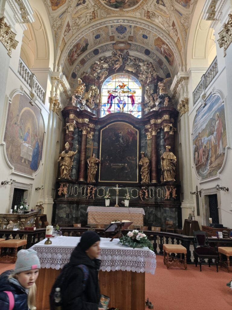 Měli jsme domluvenou návštěvu kaple, kostela a přilehlých ambitů. Pan farář nás vřele uvítal a přenechal panu správci, který nás provedl celým areálem. Dokonce jsme se dostali i na místa, na která se jen tak někdo nedostane, viděli jsme totiž zblízka zrekonstruované varhany, navštívili jsme muzeum a podzemí.
