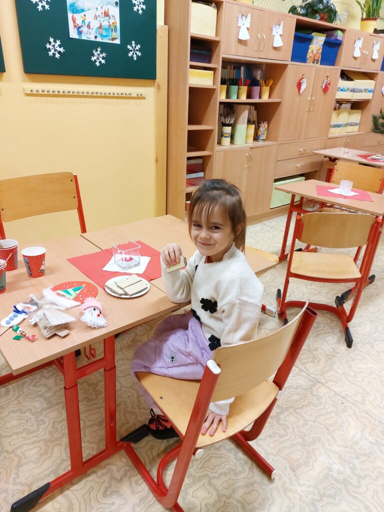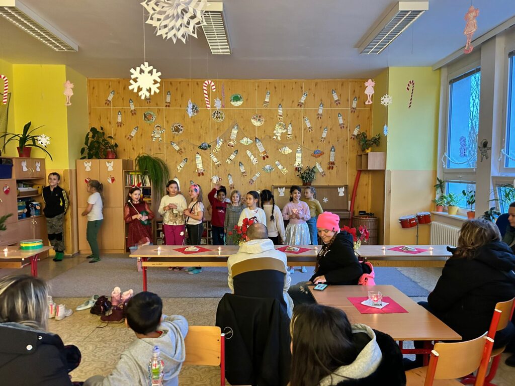 Ve čtvrtek 27. listopadu se na naší škole konal dlouho očekávaný vánoční Jarmark. Na tuto akci jsme se všichni pilně připravovali. V hodinách tvořivých činností vznikaly krásné vánoční ozdoby a dekorace. Společně s žáky druhých tříd jsme také nacvičili několik vánočních písní, které přispěly k slavnostní atmosféře. V den Jarmarku proměnily paní učitelka s paní asistentkou naši třídu v útulnou kavárničku, kde byly vystaveny naše výrobky. Rodiče se aktivně zapojili a přinesli pohoštění, nádherné ručně vyrobené andělíčky, skřítky, zápichy do květináčů a další originální dekorace. Jarmark se opravdu vydařil a všichni jsme si ho náramně užili. Rodičům patří velké poděkování za jejich ochotu a spolupráci!