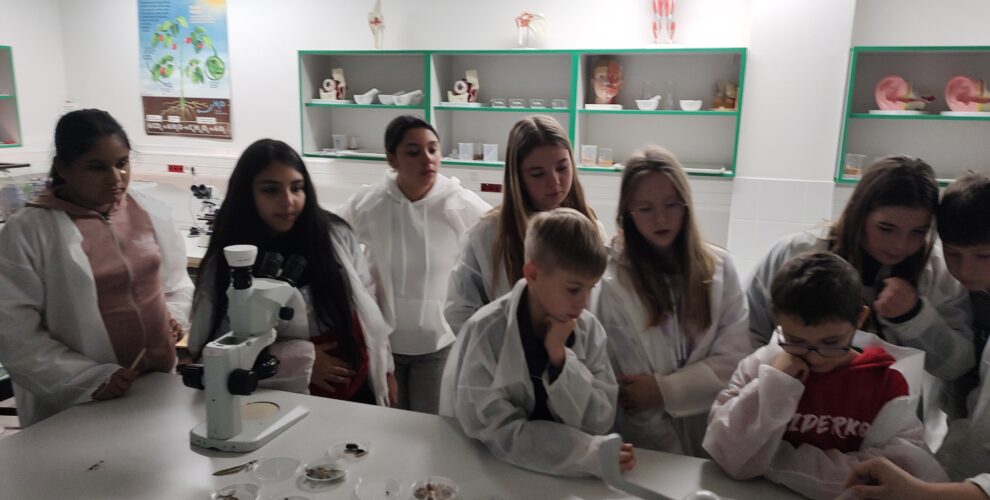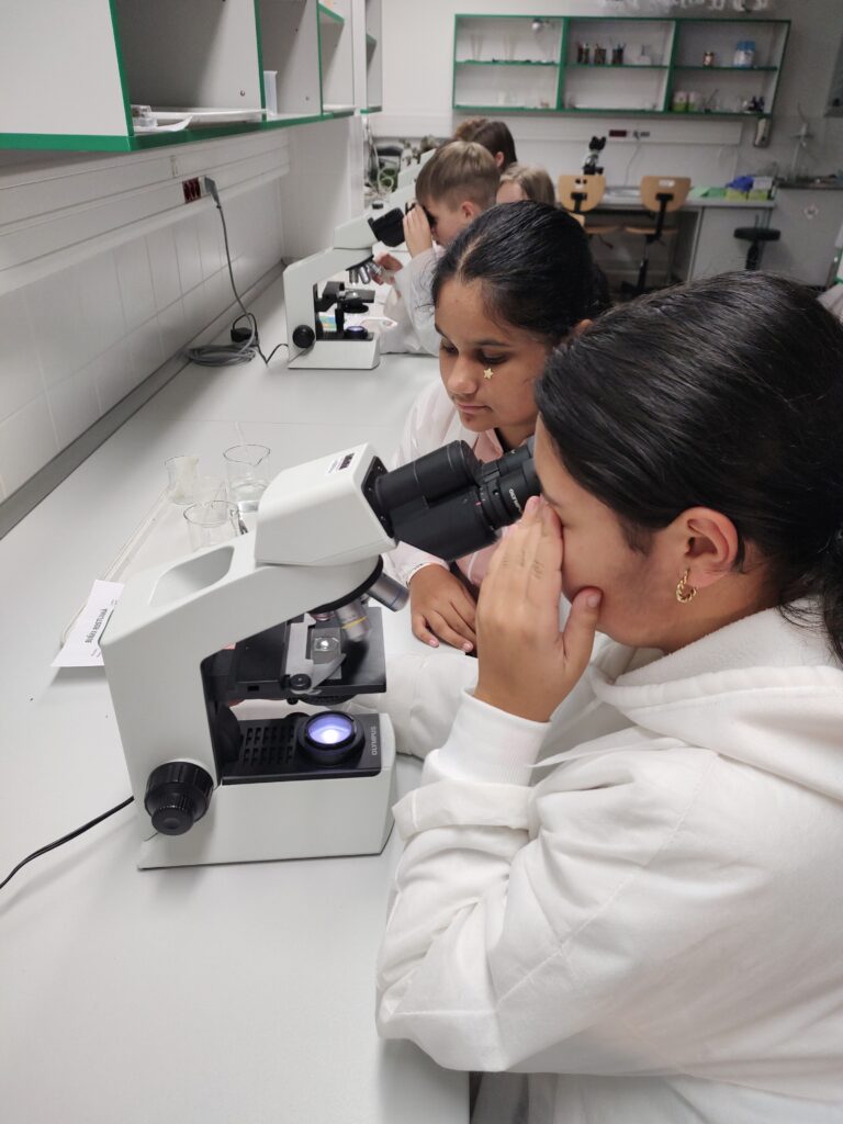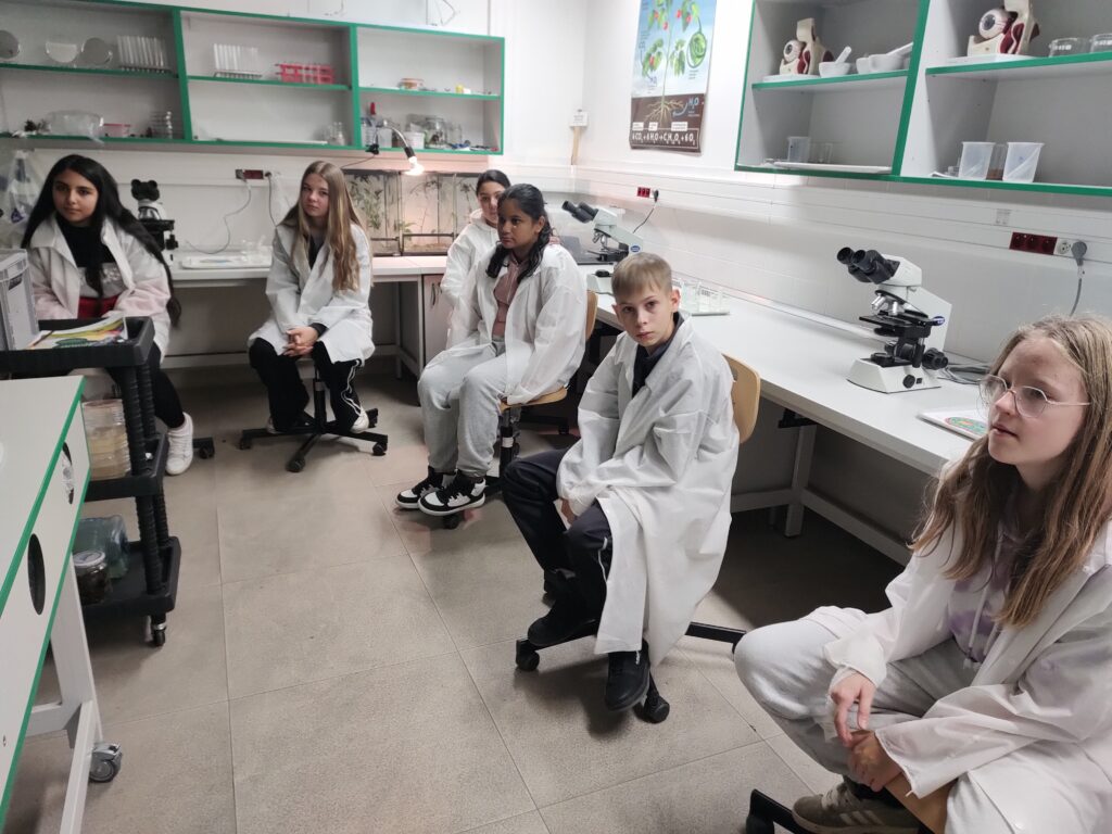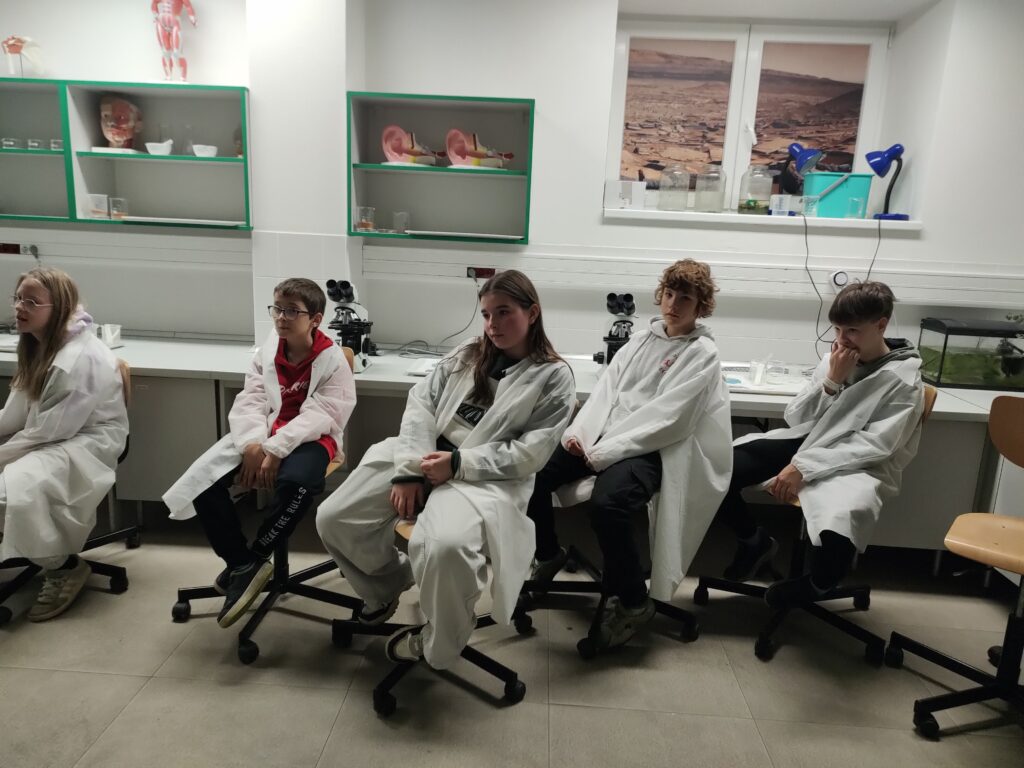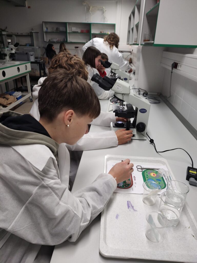 Nejzajímavější byl workshop v laboratořích, kde si všichni pod odborným vedením vyzkoušeli práci s mikroskopem. Jeden preparát byla rostlinná buňka, druhý vlastní buňky a “hodné” bakterie z úst samotných žáků. Nezapomenutelný zážitek.