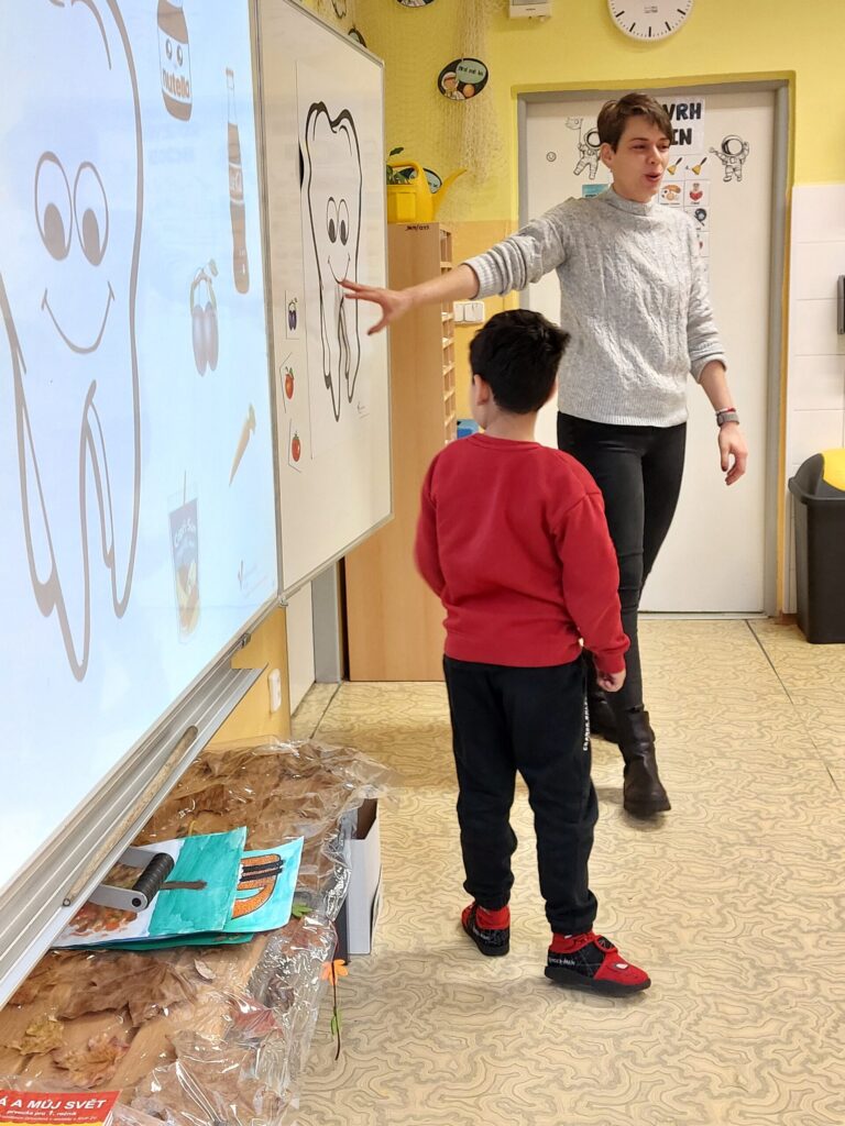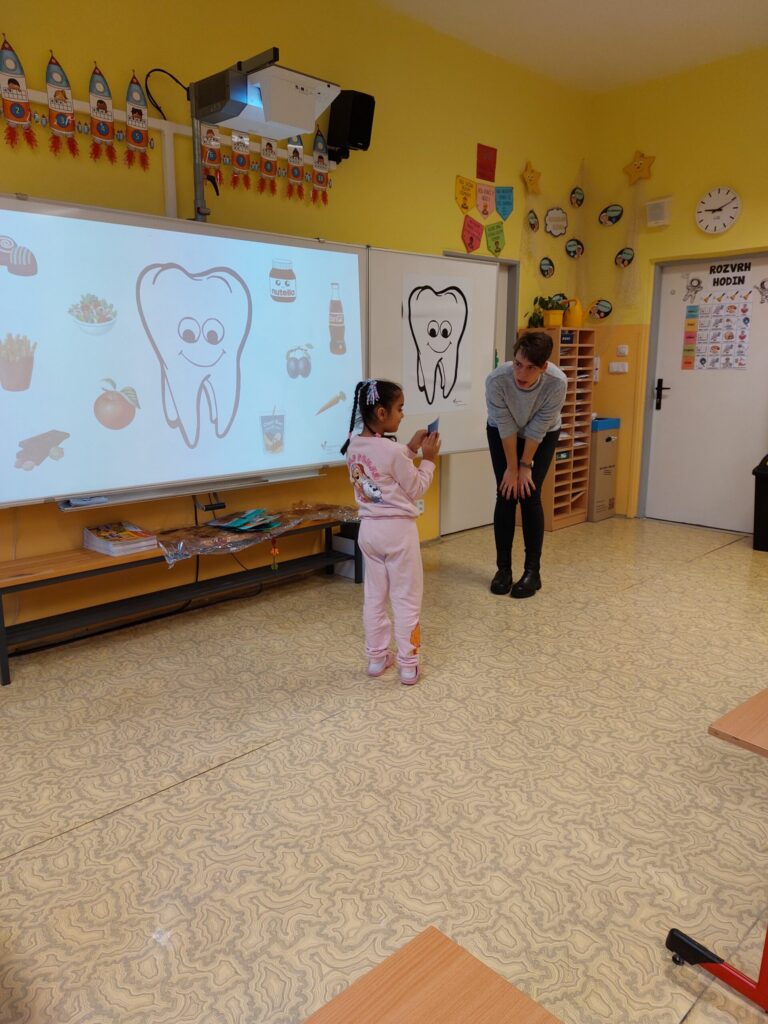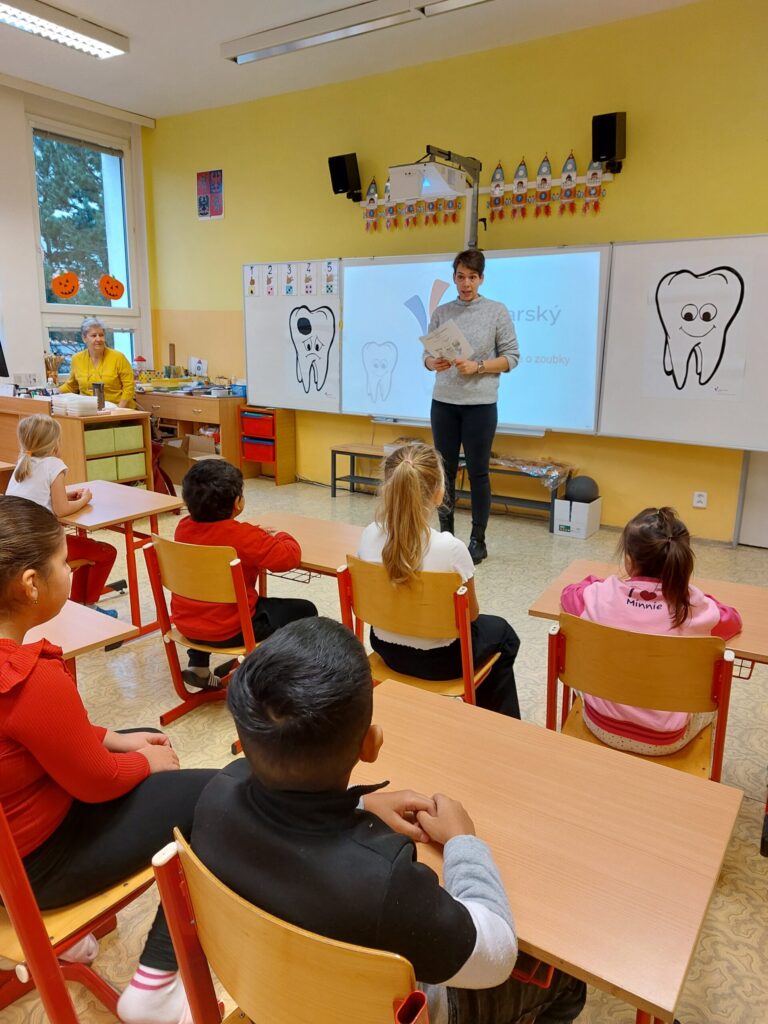 V pátek nás ve škole navštívily paní zubařky. Povídaly si s námi o stavbě zubu a o tom, jak se správně starat o naše zoubky. Nakonec jsme si všichni pod jejich dohledem vyčistili zuby a zjistili, že správná technika je opravdu důležitá!