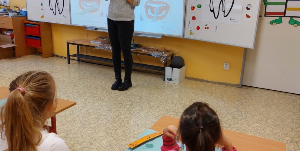 V pátek nás ve škole navštívily paní zubařky. Povídaly si s námi o stavbě zubu a o tom, jak se správně starat o naše zoubky. Nakonec jsme si všichni pod jejich dohledem vyčistili zuby a zjistili, že správná technika je opravdu důležitá!