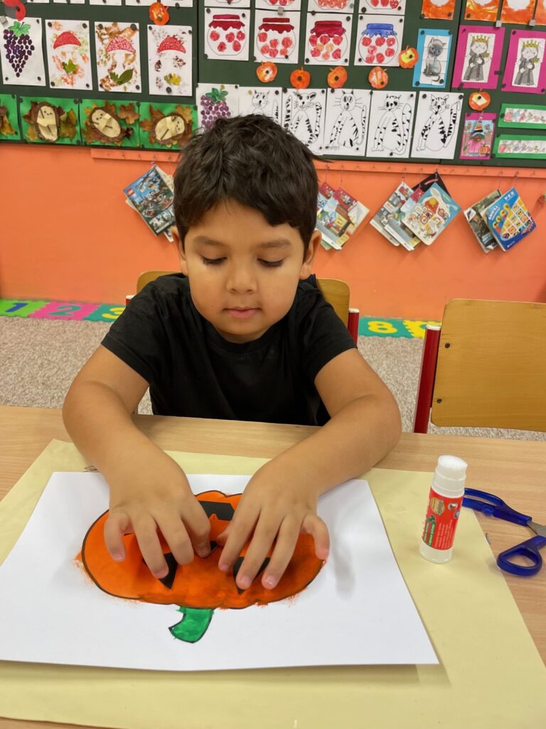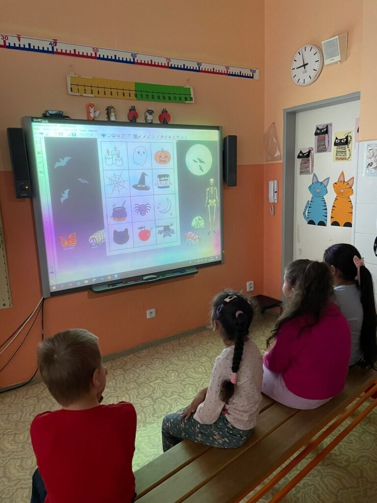 Halloween – den před křesťanskou slavností všech svatých. Mezi symboly Halloweenu patří dýně, kostýmy, masky a strašidelná výzdoba. To vše bylo námětem při různých činnostech a učení v naší třídě. V kostýmech přišly všechny děti a hned jsme podnikli stezku odvahy. Zúčastnili se všichni a dobře to dopadlo. Během dne směřovala vycházka do okolí sokolovského hřbitova, abychom si připomněli i náš český svátek Dušičky.